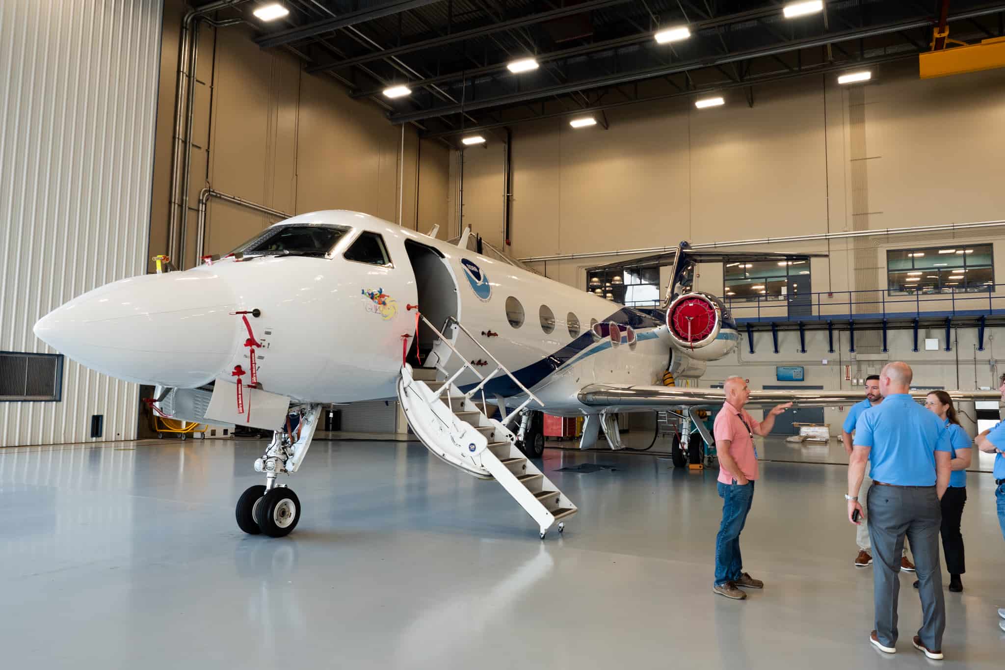 In mid-July, a group of Tower Hill team members were invited by the National Oceanic and Atmospheric Administration (NOAA) to a behind-the-scenes tour of their Aircraft Operations Center in Lakeland, FL. Situated on the edge of Lakeland Linder International Airport, the Aircraft Operations Center (AOC) serves as the home base for NOAA’s fleet of nine crewed aircraft. Among these aircraft are NOAA’s “Hurricane Hunters,” which fly in, around, above, and through tropical cyclones to gather data vital to tracking and predicting a storm’s path and intensity.